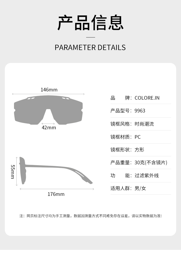 专柜品质 支持货比! 联系客服送运费险 黑框水银片 黑框灰片【9963】 黑框红膜【9963