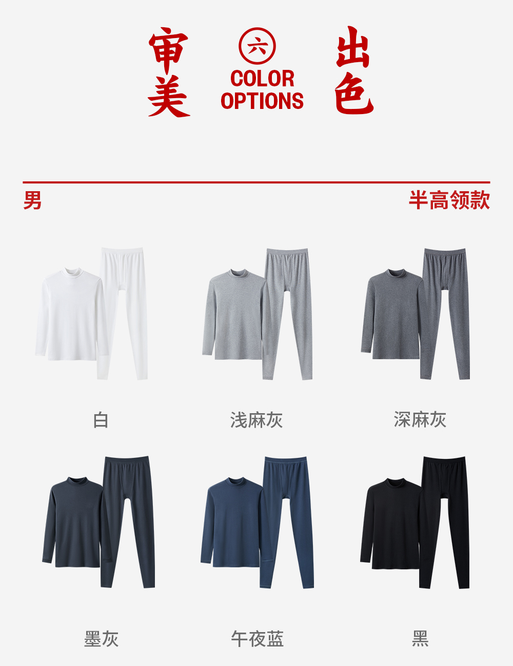 墨灰(男圆领) 深麻灰(男圆领) 冰岛灰(男圆领) 黑色(男圆领) 浅麻灰(男圆领) 钴蓝(男圆领) 深藏青(男圆领) 柔蓝(男圆领) 白色(男圆领) 深麻灰(男半高领) 浅麻灰(男半高领) 墨灰(男半高领) 黑色(男半高领) 白色(男半高领) 提琴咖(女圆领) 肤妃(女圆领) 热软糖(女圆领) 丁香紫(女圆领) 黑(女圆领) 裸粉(女圆领) 粉红(女圆领) 洛玫红(女圆领) 酱红(女圆领) 黑(女半高领) 裸粉(女半高领) 丁香紫(女半高领) 肤妃(女半高领) 热软糖(女半高领)