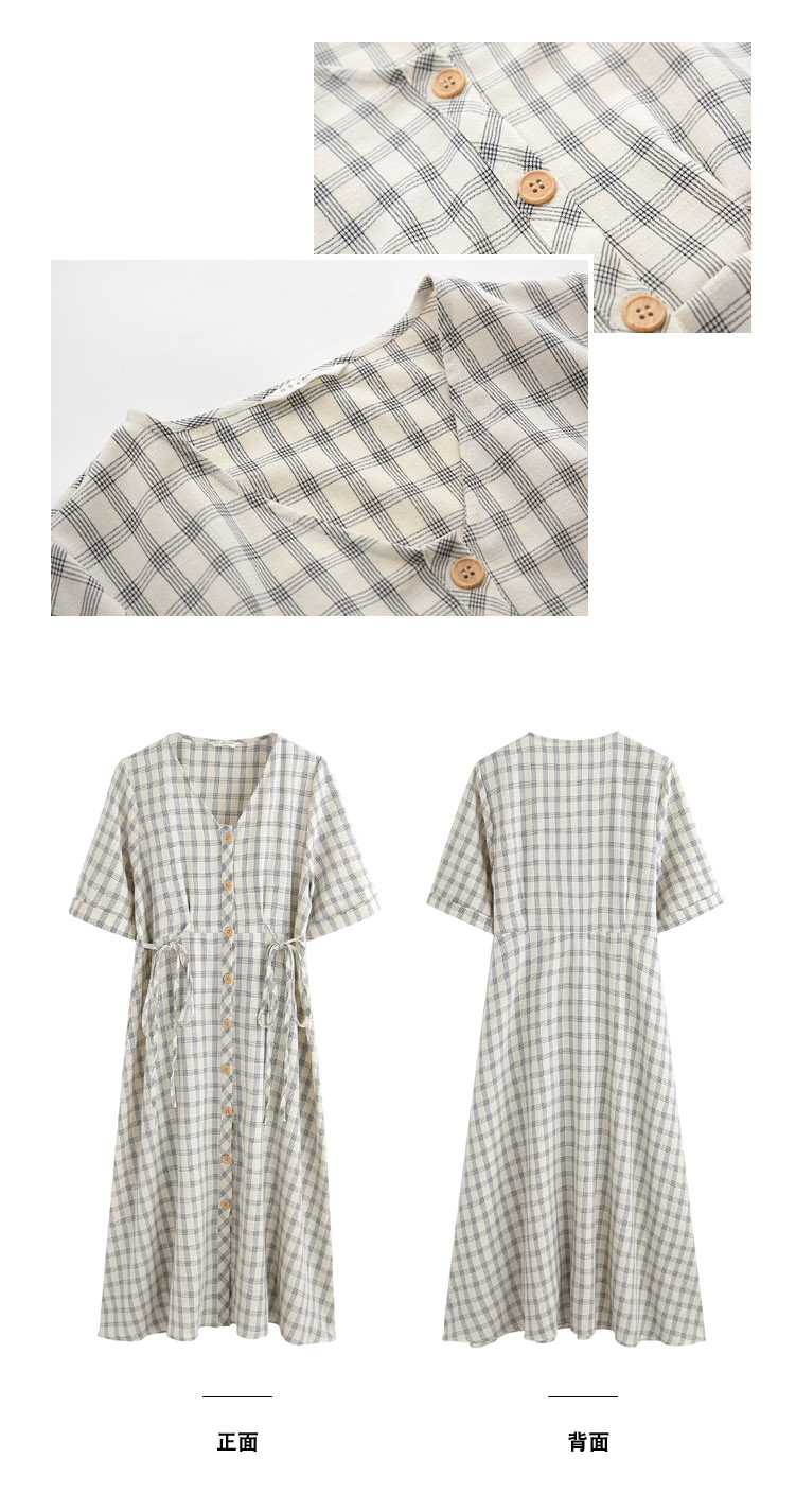 棉麻复古格子连衣裙夏学生ins小清新适合胯大腿粗的裙子女中长款