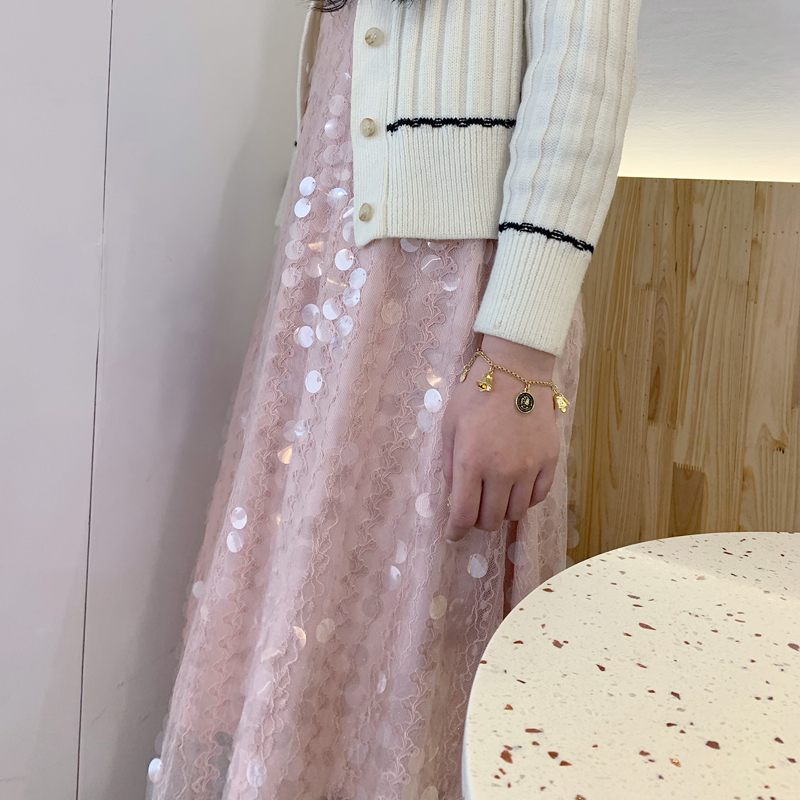 春夏新款亮片小性感吊带连衣裙女中长款V领度假网纱蕾丝裙子