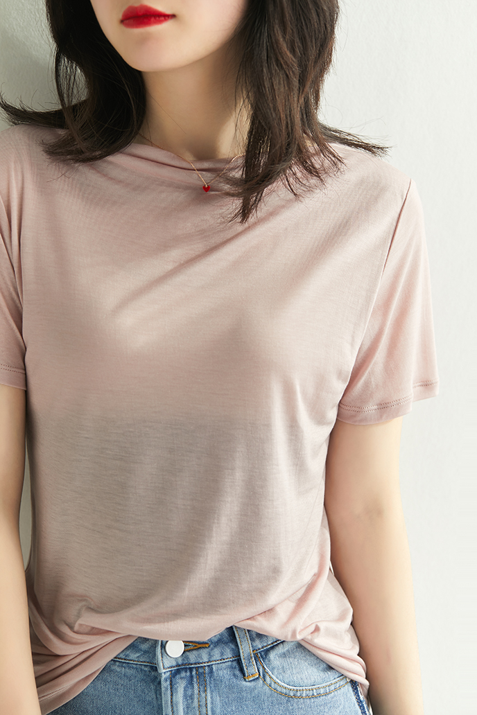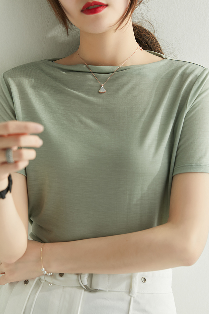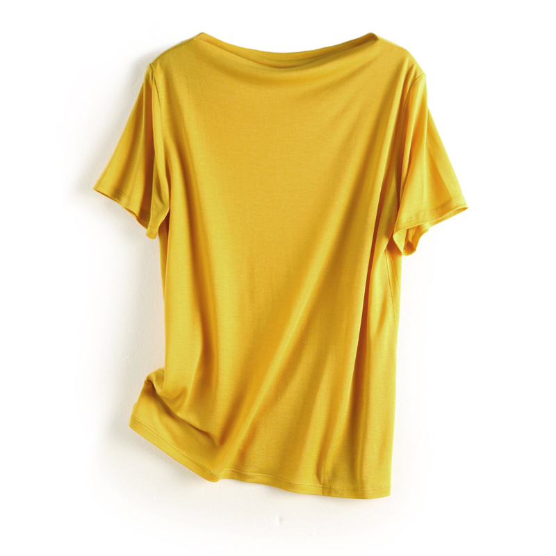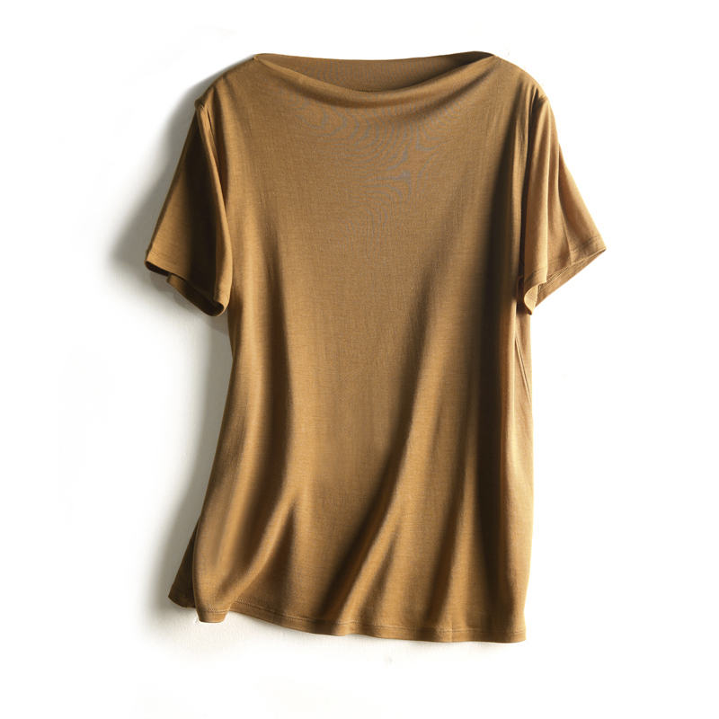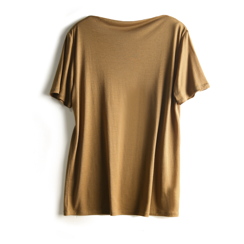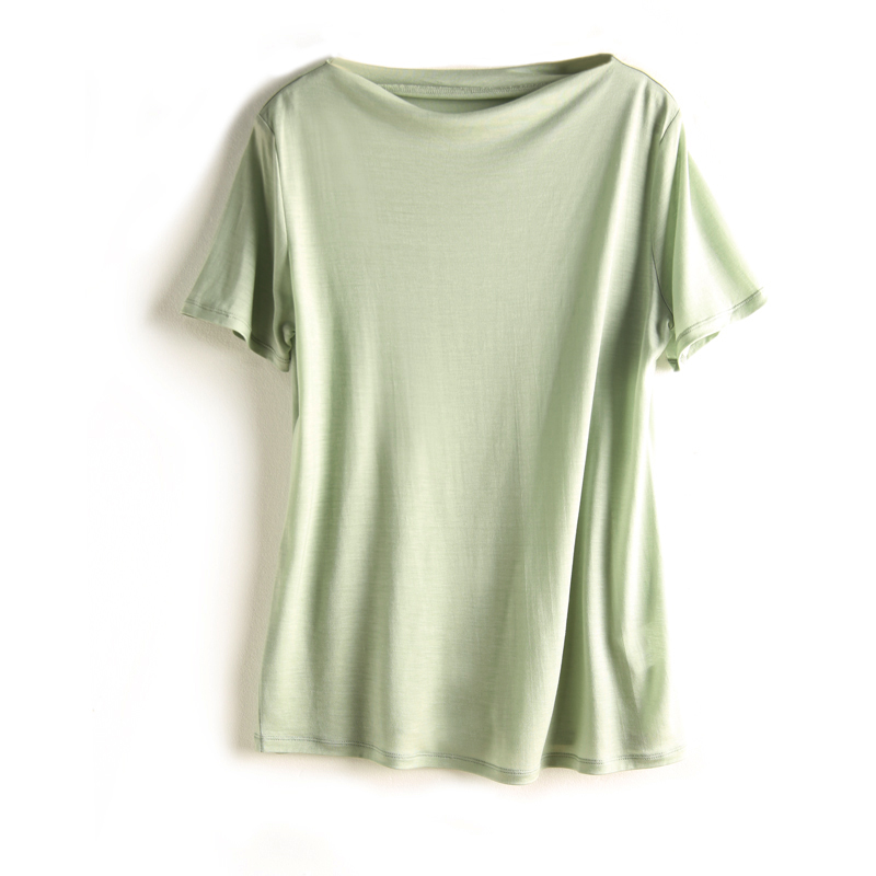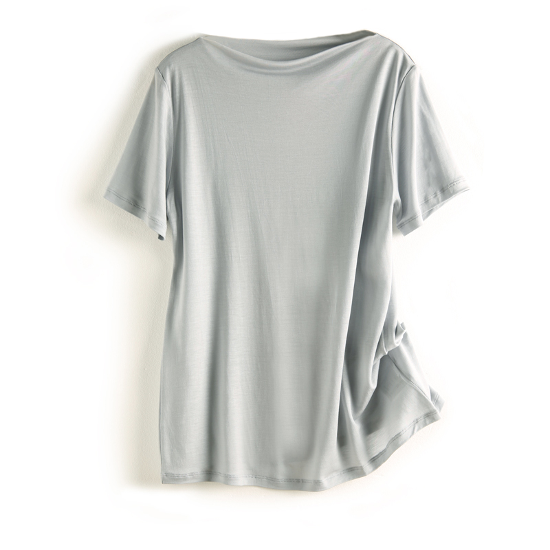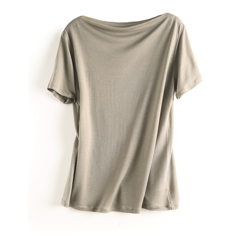 商品名称: 10色可选!舒适实穿!桑蚕丝+莱赛尔一字领短袖T恤