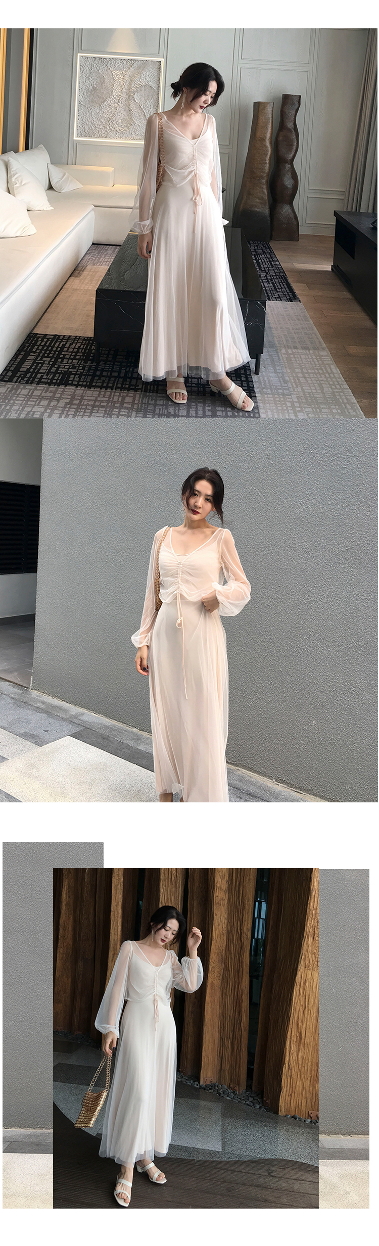 吊带网纱连衣裙女夏季两件套