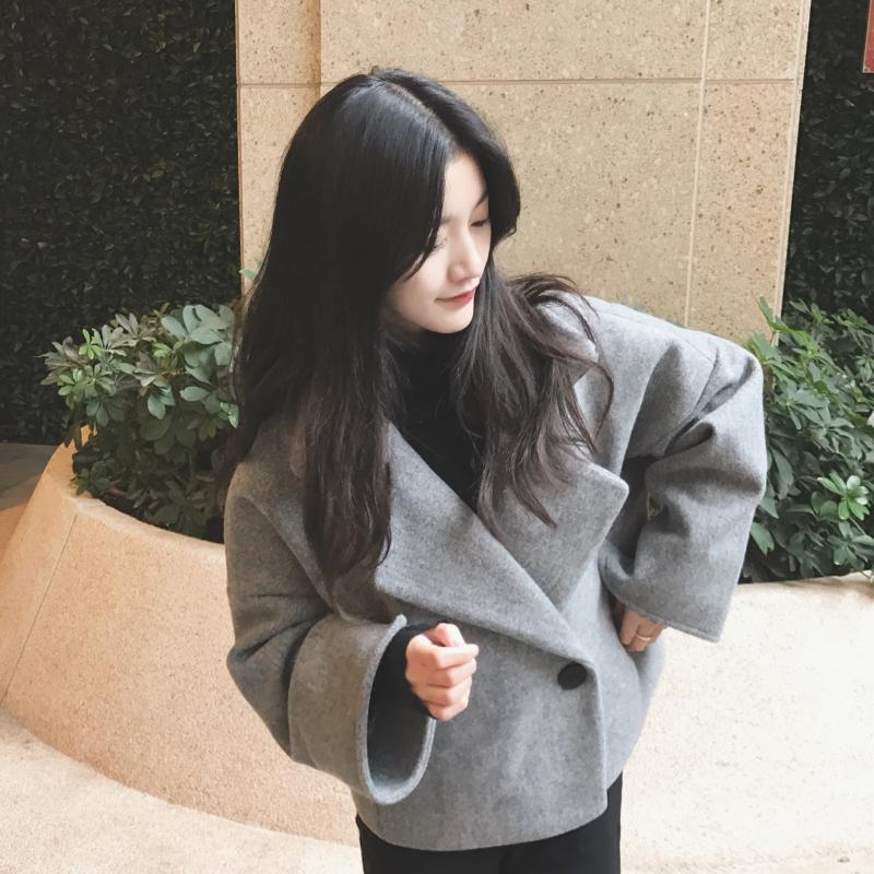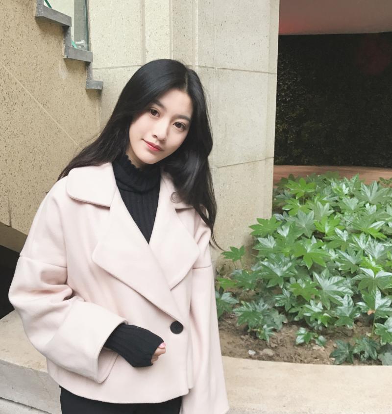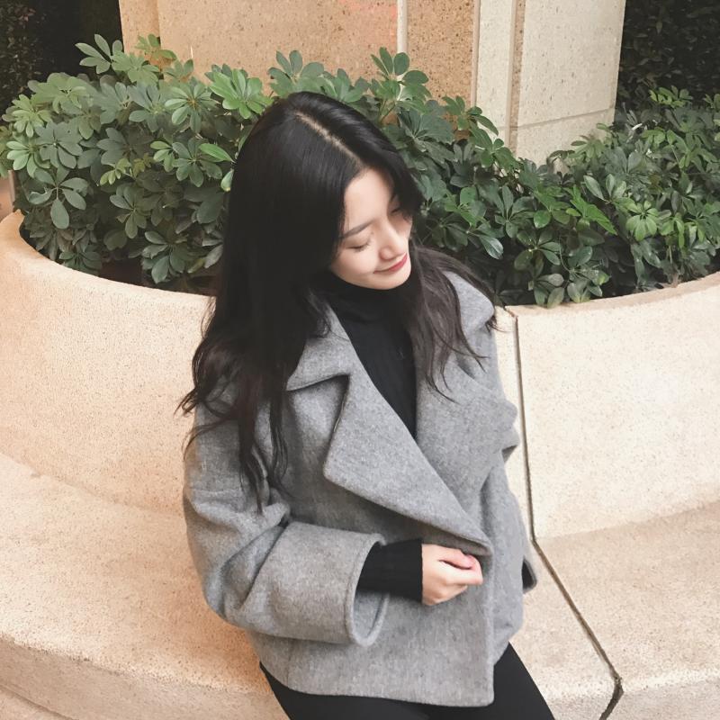 修身短款加厚毛呢大衣外套女